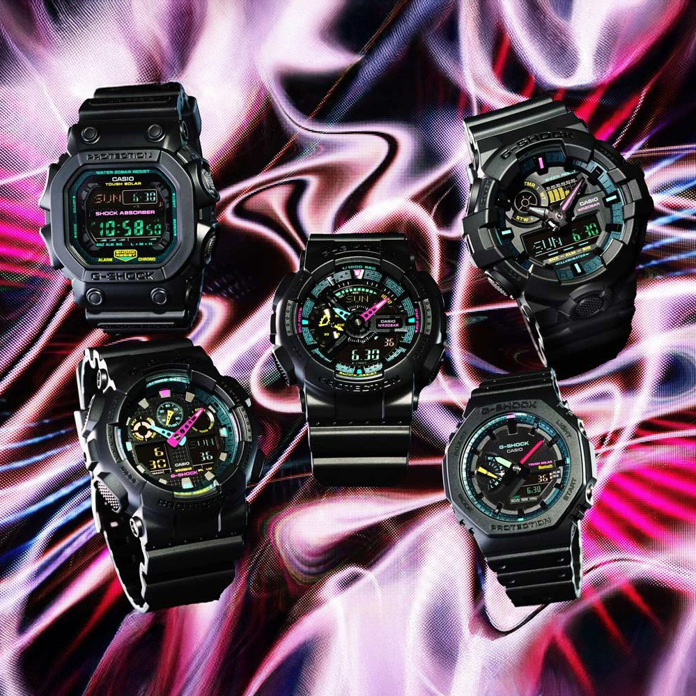 飾以螢光色彩的強悍G-SHOCK手錶將大膽的黑色與鮮豔的色彩融為一體。