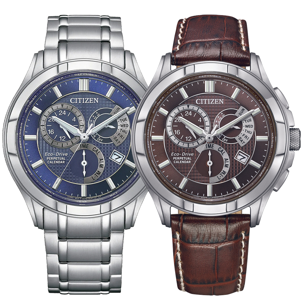 星辰錶CITIZEN 光動能 萬年曆 男士商務腕錶42mm(BL8160-58L藍/BL8160-07X棕)-ERICA STORE 時尚時計