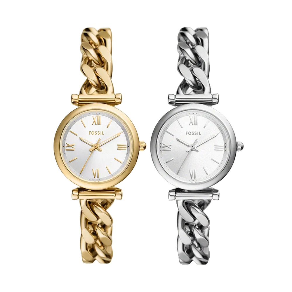 Fossil Carlie 極簡銀羅馬時刻手鍊式錶 28MM(ES5329金/ES5331銀)-ERICA STORE 時尚時計