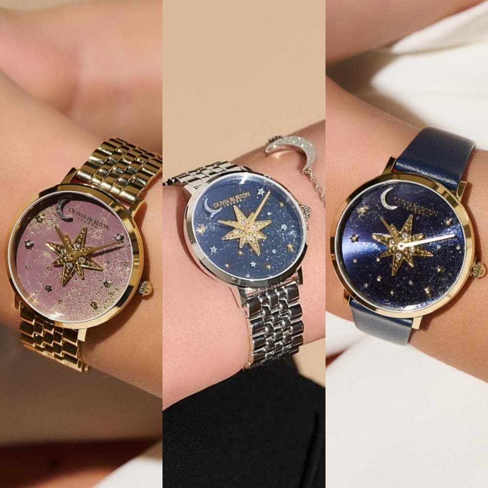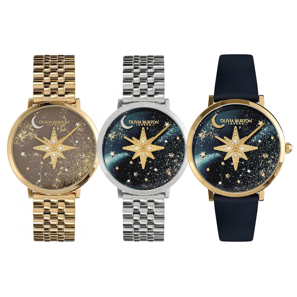 Olivia Burton Signature 北極星 閃耀星塵 皮革帶腕錶35MM(24000081)
